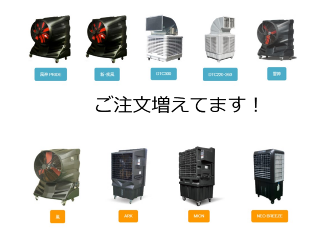 冷風機のご注文・ご相談が増えております 新着情報By sasakihpm2026年3月27日冷風機のご注文・ご相談が増えております 現在、冷風機のご注文ならびに熱中症対策に向けた導入のご相談が増えております。 例年、夏季に入りますとご注文が集中し、納期が最長で1か月ほどかかる場合がございます。 確実なご準備のた…