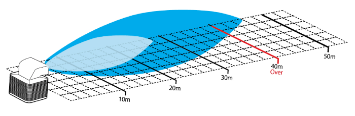 ダクトクーラー 260はその難しい屋外テストにおいても風到達距離、40M地点にあるマークをいとも簡単にクリア。