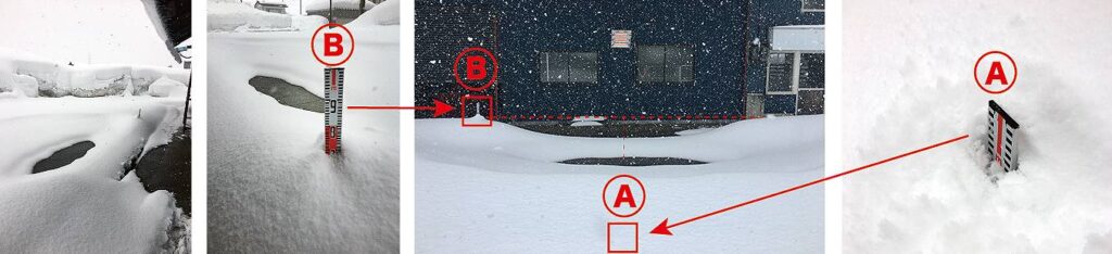 積雪10cmの融雪範囲と積雪1m時の積雪状況