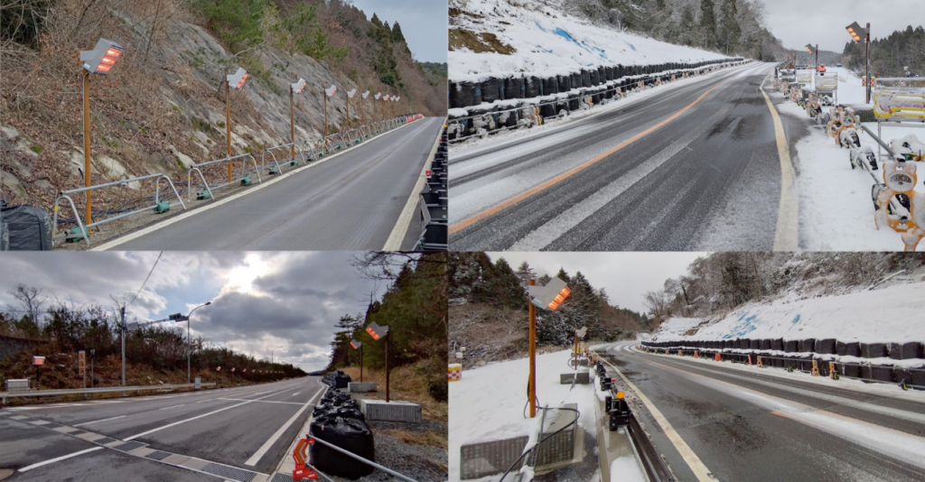 道路が大規模に崩壊した箇所の応急復旧迂回路に設置され、厳しい冬季の雪害対策にご活用いただいており、地域の安全確保ならびに復旧・復興に貢献しています。